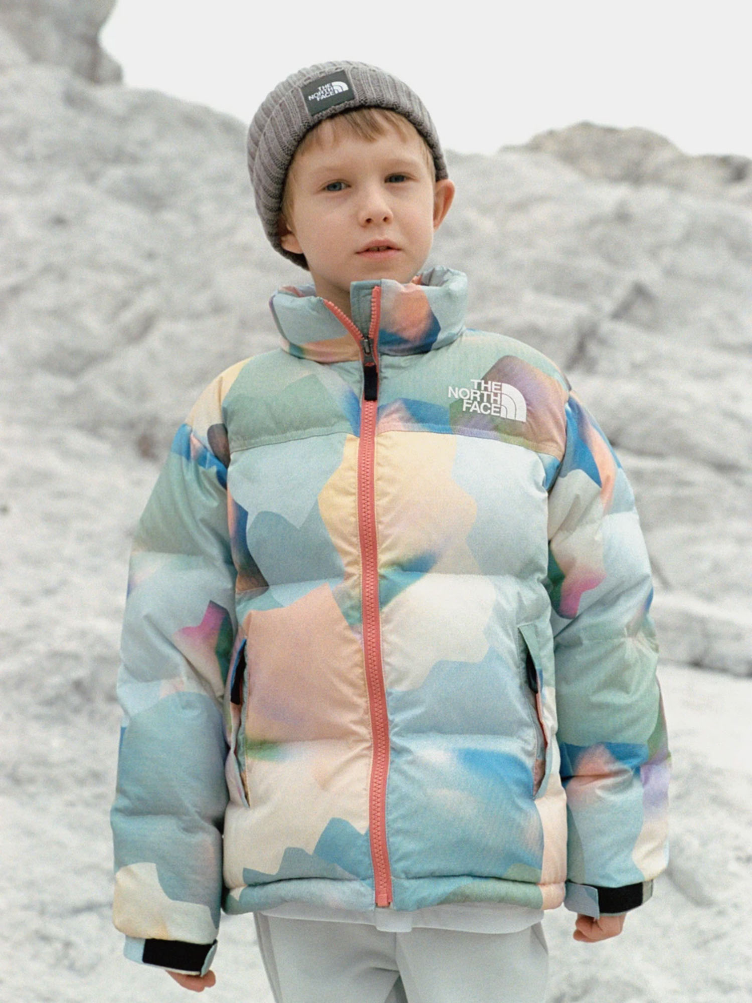 1990年代のTHE NORTH FACEを代表するヘリテージモデルであるヌプシジャケットのデザインを継承したダウンジャケットのキッズモデル。