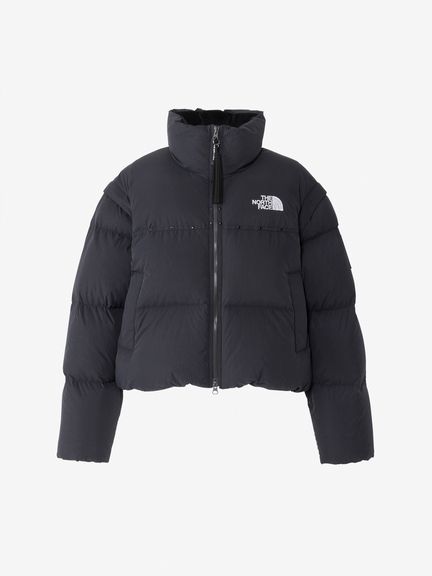 ワックス加工を施したようなナイロン素材にはっ水加工を施し、高級感と独特の質感を演出。袖は取り外し可能で、ベストとジャケットの2WAYで着用できます。裾にはドローコードを備え、シルエットの調節が可能です。