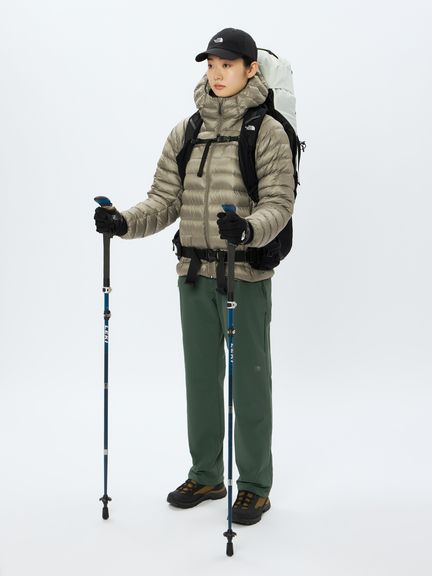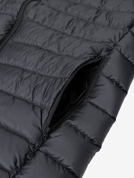 表地には漁網リサイクル糸を一部使用した、薄くしなやかなナイロン素材を採用。はっ水加工を施し、多少の雨や雪に対応します。インサレーションは不純物を可能な限り取り除き、高水準のかさ高性と保温性を持つクリーンダウン。ダウンにはっ水加工を施すことで、濡れてもかさ高が失われにくく、温かさを保つことができます。左右にファスナー付きポケットを配置。フードはヘルメット対応です。コンパクトに収納でき、携行に便利なスタッフサック付き。