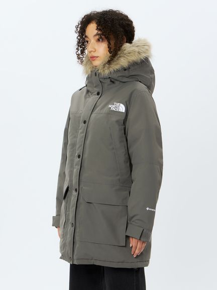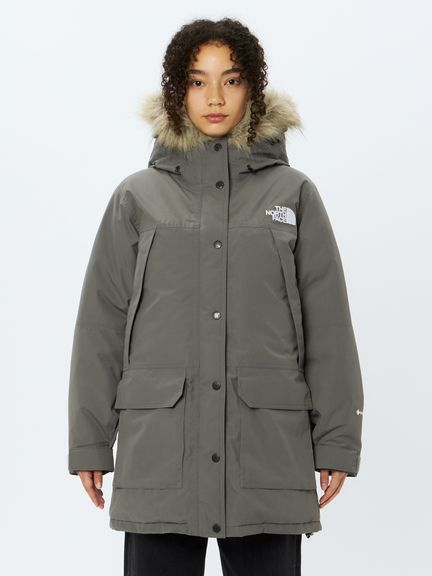 - <表地>70D Recycled GORE-TEX(2層)(表側:ナイロン100%、裏側:ePE)<中わた>GreenRecycled CLEANDOWN(ダウン80%、フェザー20%)<裏地>PERTEX QUANTUM(ナイロン100%)<ファー部分>Fake Fur(ポリエステル80%、モダクリル20%)<基布>ポリエステル100%