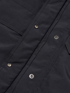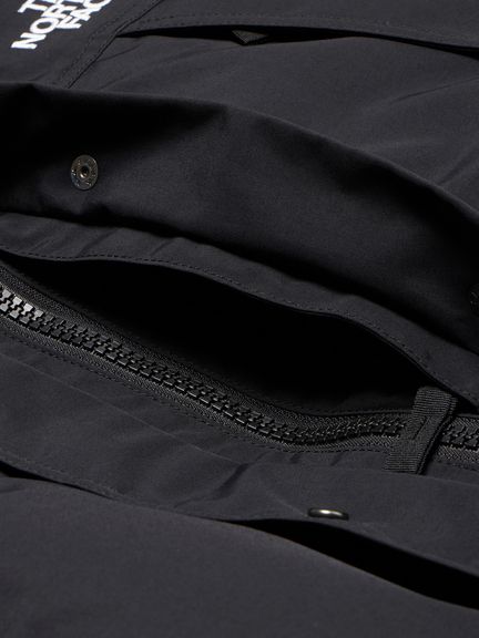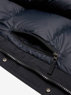 非フッ素メンブレンによる、ePE GORE-TEX PRODUCTS 2層素材を採用。耐久性の高い70デニールナイロンを表生地に使用し、肩、肘、後ろ裾端は高強度の生地で補強をしています。中わたには高度な洗浄技術により、汚れを徹底的に除去したクリーンなダウンが高い保温性を確保します。フードのファーは取り外し可能です。左右脇にフラップ付きの大型ポケットを配置。