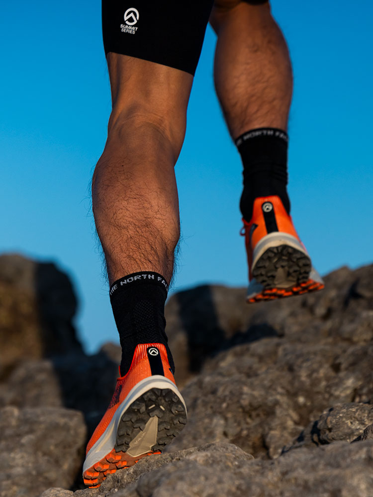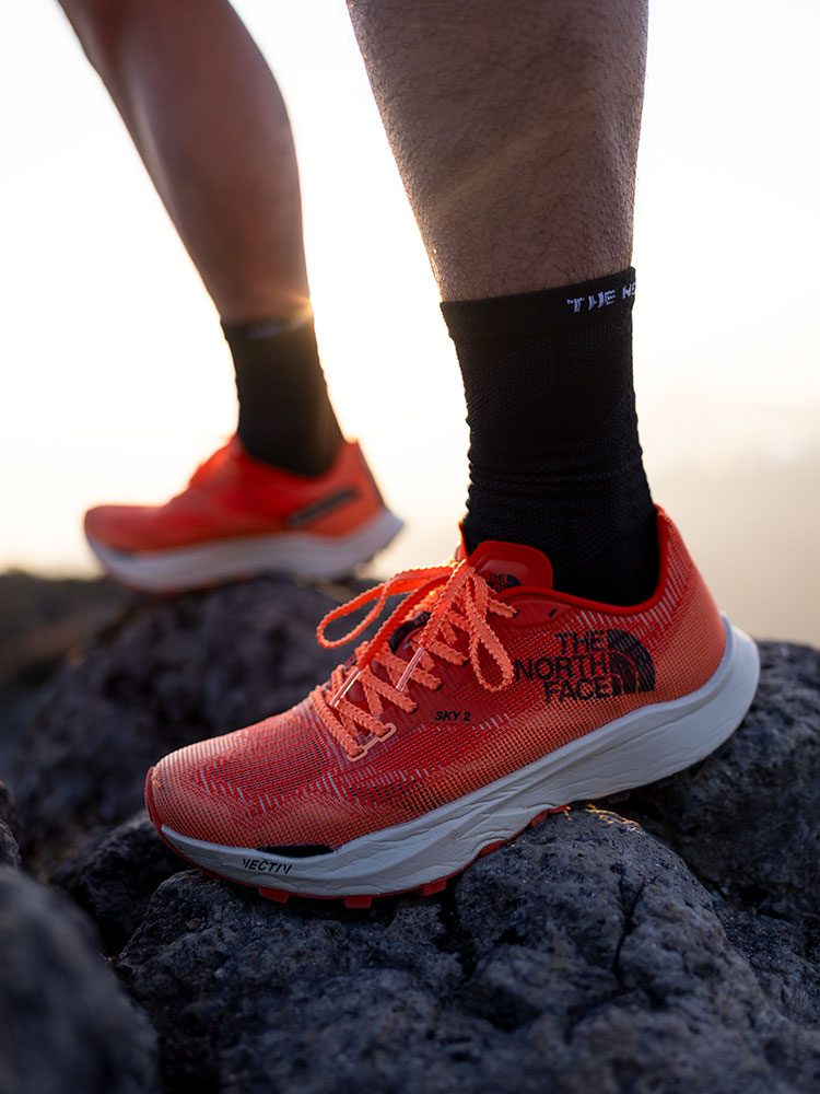 アッパー素材には、ブリーザブルメッシュを採用。フィット感を高めるウィングタン構造で、激しいアップダウンやスピードを上げるシーンでも、シューズ内の足のズレを抑制。ミッドソールの厚みを抑えることで路面を捉えられる足裏感覚があり、不整地での高速な走りにも対応するアスリート仕様です。