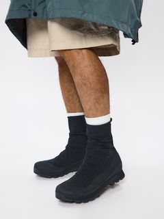 軽量で高い摩耗耐久性のSpectra RIP STOPアッパーを採用することで、車などへの積載時や未使用時のシューズラックにコンパクトに収納できます。アウトソールには、優れた耐久性とグリップ力を発揮するVibram Montのラバーコンパウンドと、マッドな路面環境でも安定したトラクションを発揮するVibram Traction Lugデザインを採用。着脱をスムーズにする後ろ足首にあるバックファスナーは、雨水や砂利などの浸入を軽減するガゼット構造です。