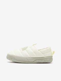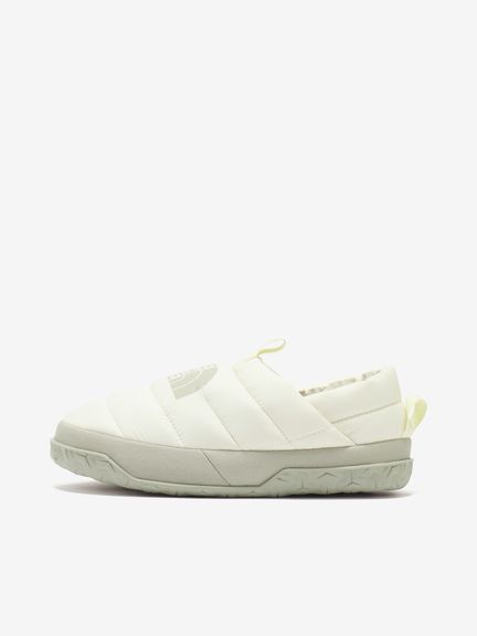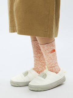 はっ水加工を施したリサイクルポリエステルをアッパーに使用し、550フィルパワーのダウンを封入。フットベッドのライニングは素足でも心地よく履けるフリース仕様。アウトソールには環境に配慮した20%リサイクルラバーを採用。屋内でも野外でも使いやすいデザインです。
