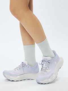 アッパー素材には、耐久性と速乾性を備えたブリーザブルメッシュを採用しています。フィット感を高めるウィングタン構造で、激しいアップダウンやスピードを上げるシーンでも、シューズ内の足のズレを抑制。タンや履き口内側にクッション素材を多めに配置することで、締め付け感を軽減して足への負担を和らげ、初めてのロングディスタンスレースも高い安定感と推進力でサポートします。