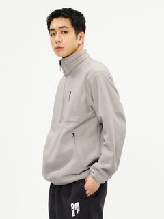 軽量性、保温性、イージーケア性を備えたPOLARTECは、やわらかさ、表面の美しさが特徴。保温性を持ちつつも通気性がよいため、ムレにくいのも魅力です。両サイドにファスナーポケット、左胸にはハーフドーム型のファスナーポケットを配置。裾と袖口は肌当たりのよいパイピング仕様です。