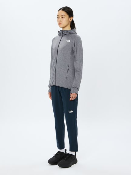 やや長めに設定した袖はサムホール仕様で、ウォッチウィンドウを両腕に設けています。日差しの強い季節に嬉しいUVプロテクト(UPF50+、紫外線カット率95%以上)機能付き。軽量で汗処理能力にも長けているため、気温が低いシーズンのランニングだけでなく、幅広いアウトドアシーンで活用できます。女性サイズも展開。