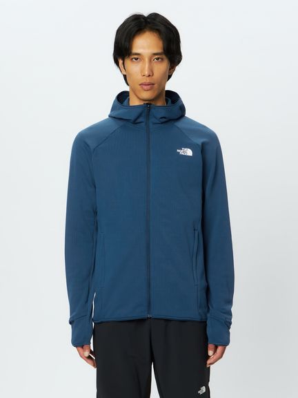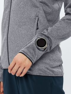 メイン素材には、大小2種類のグリッドフリースを採用。冷気を受けやすい前身頃と腕は、大きなグリッドフリースで保温力をアップ。汗をかきやすい後ろ身頃は、小さなグリッドフリースを採用し、適度な保温性と通気性を高めています。温かさをキープしながら、優れた通気性を持ち合わせることで、ウエア内のムレを軽減。