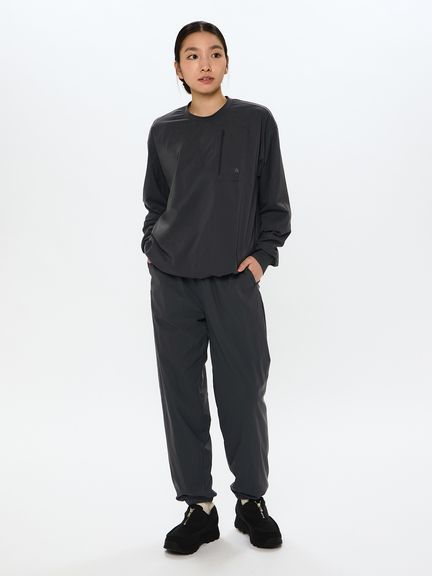 ゆったりと着こなせるゆとりのあるシルエット。デスクワークなどの前傾の動きに特化した、前後差のある特徴的なパターン設計を採用しています。旅先での行動や出張時のパフォーマンスを向上する機能を持ちつつ、都市生活に対応するデザイン性を高めたアイテムです。