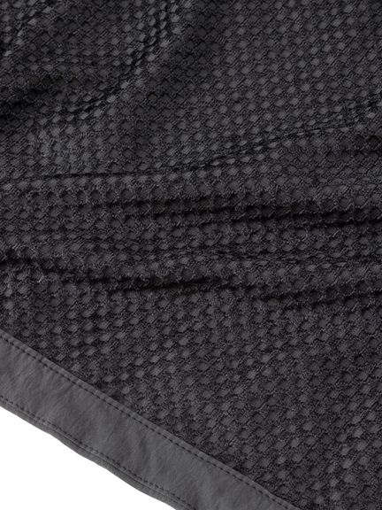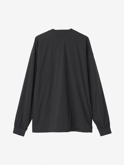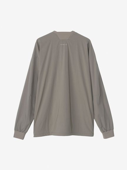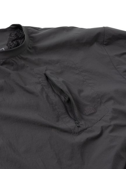 表地は天然素材の風合いを持つタスランナイロン。裏地はやわらかな毛足で、適度な保温性と通気性を兼ね備えたグリッドフリースを採用。左胸には小物類の収納に便利なファスナーポケットを配置しています。袖口と襟はフィット感のよいリブ仕様です。