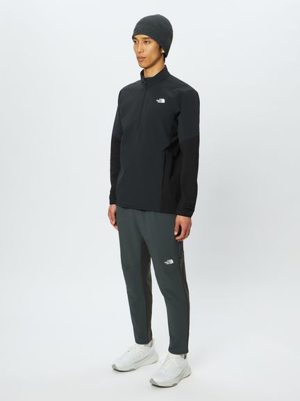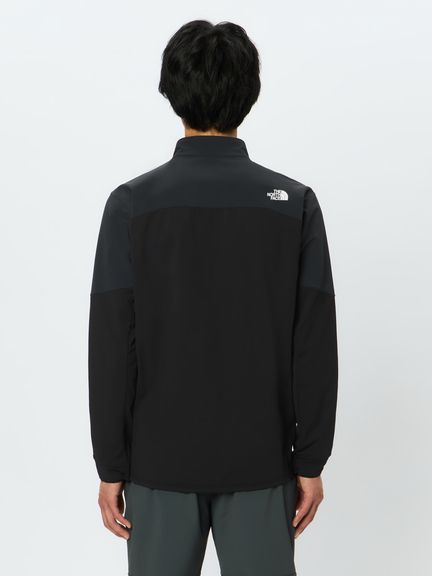 前身頃と袖の上部には耐風性と保温性を備えたサーマルフリースを採用し、ランニング時の冷たい風を軽減。背面や脇下、袖の下部にはランニング時の腕振りなどに追従する軽量なストレッチフリースを配置しています。