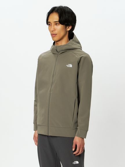 適度な防風性と保温性、豊かなストレッチ性が特長のソフトシェルフーデッドスウェットジャケットです。
