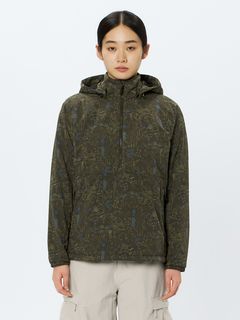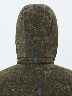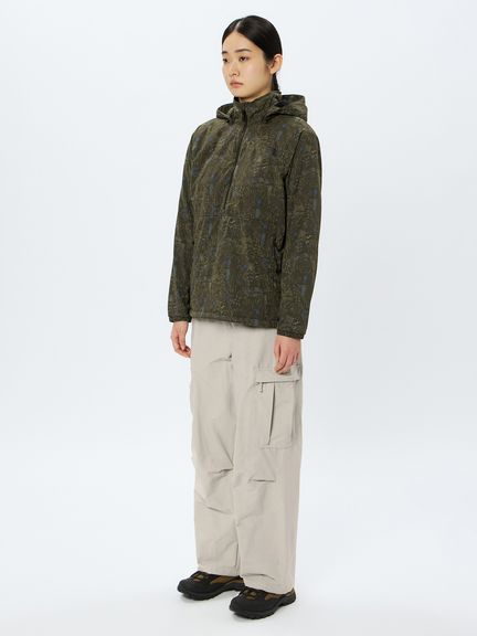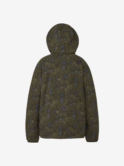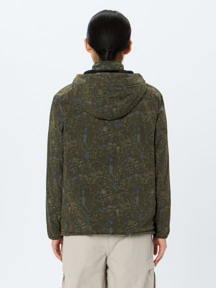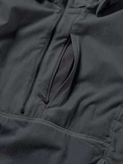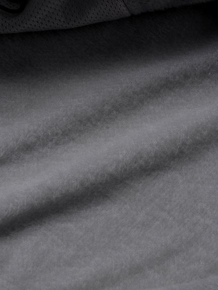 表地ははっ水性があり雪も付きにくいソフトシェル素材を採用。裏地は中空糸を使用したオクタフリース素材。身頃部分はふわふわした起毛面を使用し、保温性とともに吸水性にも優れています。袖や脇部分は袖通しを考慮してフラットな面に切り替え。フードはスナップボタンで取り外しができます。両サイドと左胸にファスナーポケットを配置。