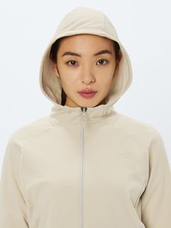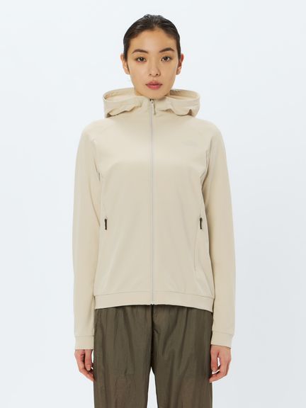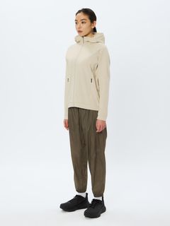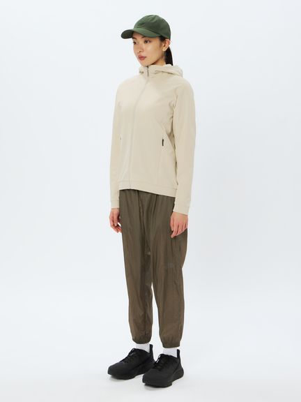 ストレッチ性が高く軽量な女性用フリースフーディです。