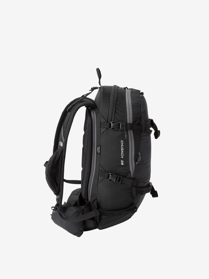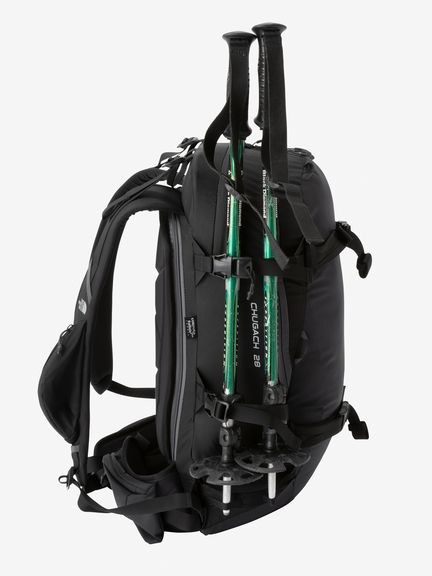 Chugach 28は、サイドカントリーからお手軽な近場のバックカントリーエリアまで対応する必要十分な容量で、ライディング時の動きに追従しやすいブレ感が少ないパネルローディングを採用したモデルです。素材には、軽量で耐久性に優れる330デニールストライプドビーナイロンをメインファブリックに使用。さらに高い強度を必要とするフロントパネルとヒップハーネスには、耐摩耗性を誇るコーデュラバリスティックナイロンを採用することで、軽さと強度のバランスを向上させています。フロントパネルには素早いアクセスが可能なアバランチポケットを装備し、万が一のレスキュー活動をサポート。本体内部へは大きく開くバックパネルからのアクセスが可能。その他にも、スノーボードとスキーキャリー、ヘルメットホルダーなどを装備し、グローブ装着時も操作しやすいパーツ類で構成。スノーフィールドを楽しむための高い機能性で仕上げています。