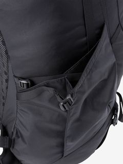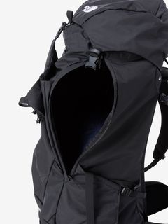 ウエストハーネスは左右一体型になり、荷重バランスの安定性に貢献。本体へのアクセスは、従来のトップローディング式に加え、雨蓋を操作せずに内部へのアクセスが可能な縦型サイドファスナーと、下部のアクセスファスナーを採用。雨蓋の容量も大きくし、レインカバー内蔵の専用ポケットを設けています。