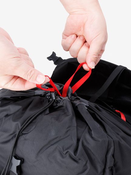 - 通気性とフィット感を高めた、EVA+メッシュの背面パネルと成形のショルダー/軽量でフィット感に優れた背面内部のPEシート/PEシートと一体化した軽量なワイヤーフレーム/左右一体化することでフィット感を高めたウエストハーネス/はっ水ファスナーを使用した各ポケット/フロントに大型のドロップポケット/内部へのアクセスが可能な縦型ファスナー/両サイドに共地の大型収納ポケット/フロント両側デイジーチェーン/ポールループとコードロック式のストッパー/サイドポケット内部にサイドコンプレッション/雨蓋後部にレインカバー内蔵ポケット/雨蓋前後にヘルメット固定用のリフレクターループ/雨蓋裏面にはキークリップつきファスナーメッシュポケット/ワンタッチで開閉可能なスカート部分/ポケットつきのウエストハーネス/ハイドレーション対応/ボトムコンプレッション