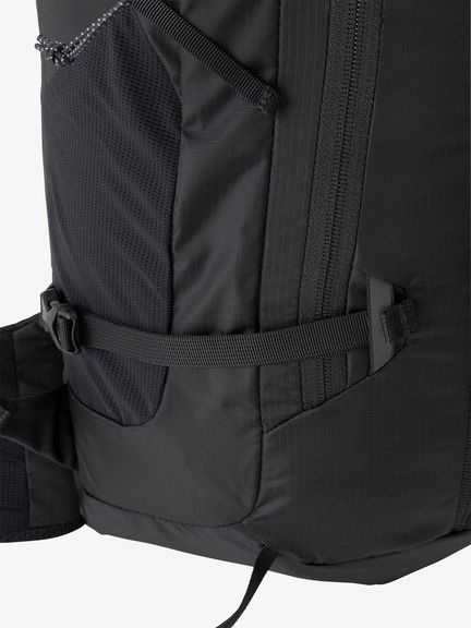 脱いだウエアなどを簡易的に挟み込める雨蓋、持ち運びに便利なトップのグラブハンドルもあり、小屋泊まりの軽装登山や3シーズンの日帰り登山まで、幅広いアクティビティに寄り添うバックパックです。