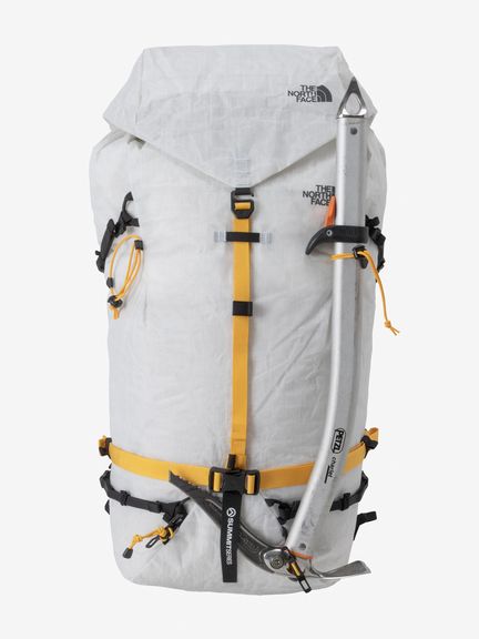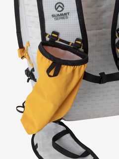 フロントには素早い着脱ができるシンプルなアックスホルダーを配置。雨蓋のファスナー付きポケットや本体内部のキークリップ内蔵の止水ファスナー付きポケットは、小物や貴重品などの収納に便利です。ショルダーハーネスには取り外し可能なボトルポケットを備えています。軽くてタフなテクニカルパックが雪山登山や冬期の登攀をサポートします。