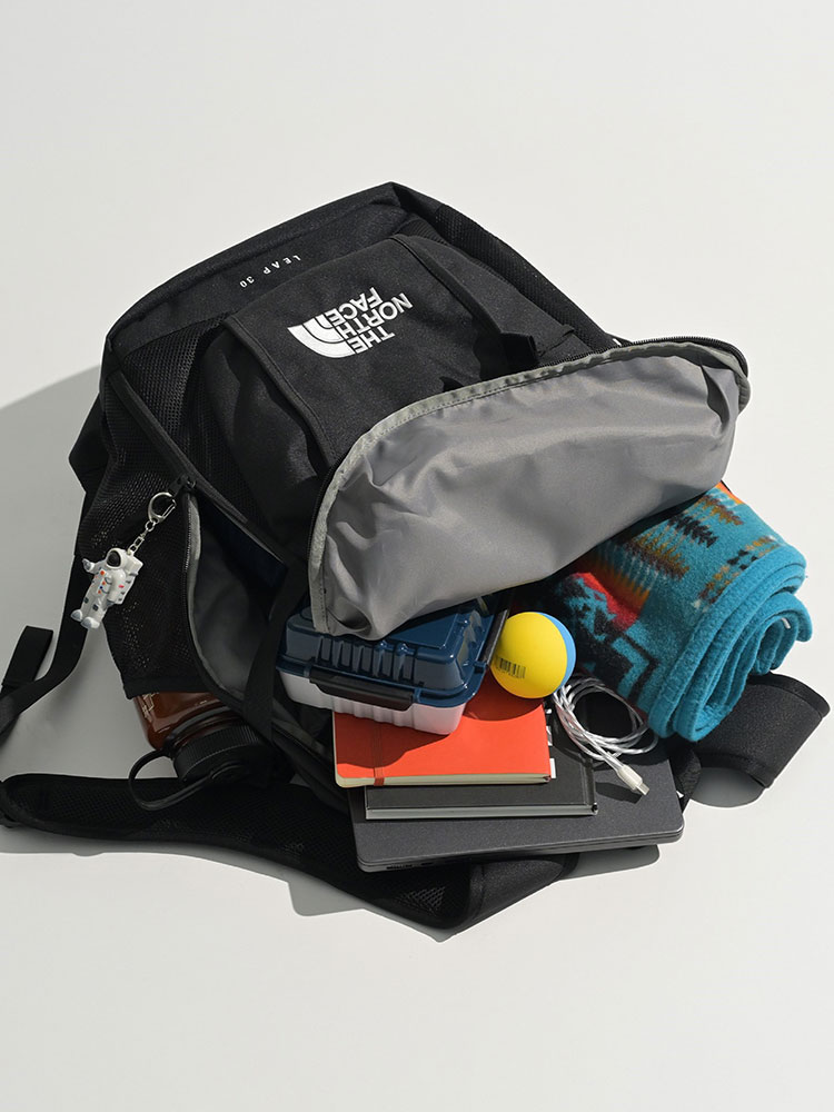 - 中身の出し入れや整理整頓が容易なボトムまで大きく開く開口部/大きな荷物の出し入れがしやすいフロントスリットポケット/小物の収納に便利なフロントファスナーポケットとトップファスナーポケット/サイドにメッシュポケット/内部にスリットポケット/チェストハーネス/リフレクター