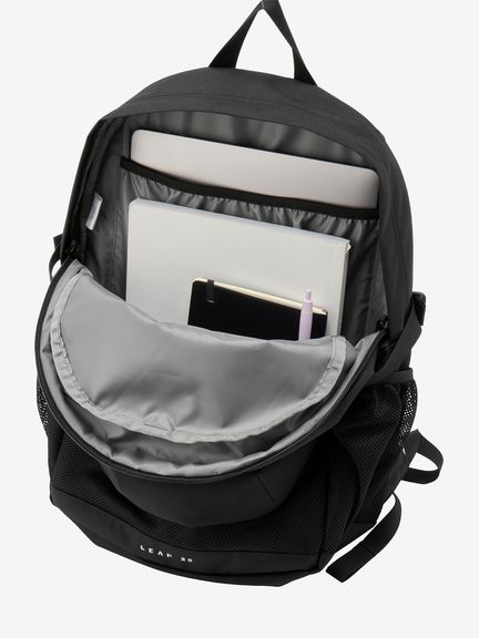 - 中身の出し入れや整理整頓が容易な大きく開く開口部/荷物の出し入れがしやすいフロントスリットポケット/小物の収納に便利なフロントファスナーポケット/サイドにメッシュポケット/内部にスリットポケット/チェストハーネス/リフレクター
