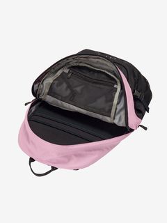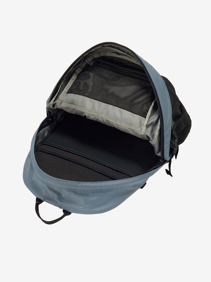 メインコンパートメントは、大きく開閉するパネルローディングタイプ。17インチまでのノート型PC専用スリーブとハイドレーション用のスリーブポケット付き。メイン生地と補強生地の両方にリサイクル素材を採用し、環境保護へも配慮しています。