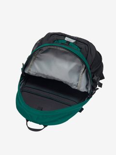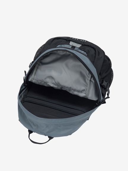 メインコンパートメントは、大きく開閉するパネルローディングタイプ。15インチまでのノート型PC専用スリーブとハイドレーション用のスリーブポケット付き。メイン生地と補強生地の両方にリサイクル素材を採用し、環境保護へも配慮しています。