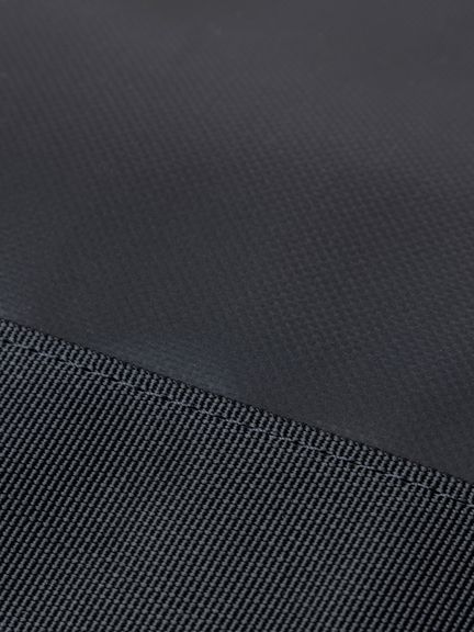 メイン素材は、1000デニールのリサイクルポリエステルに、TPEファブリックラミネートを施した高強度の生地を採用。濡れや汚れに強いTPEファブリックラミネート素材は、重い荷物でも気兼ねなく収納できる高い耐摩耗性が特長です。