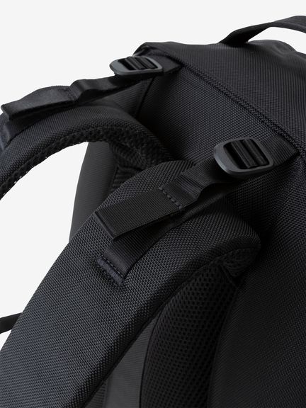 素材には、1680デニールのリサイクルバリスティックナイロンを採用。フィット感を調整できるスタビライザー付きのショルダーハーネスと、通気性の高いエアメッシュの背面で、快適に背負えます。
