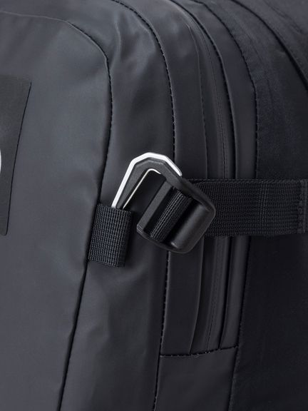 本体素材には、リサイクルポリエステル100%を使用した300デニールTPEファブリックラミネートをメインに、400デニールナイロンと840デニールリサイクルナイロンを組み合わせ、軽量性と耐久性のバランスを確保しています。補強部位もリサイクル素材を用い、環境への配慮を取り入れています。