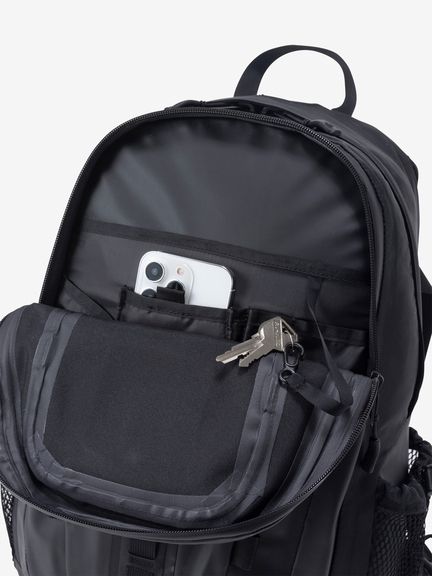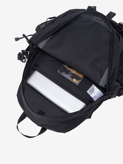 メインコンパートメントは大きく開閉できるパネルローディング仕様で、15インチまで対応するノートPCスリーブとハイドレーション用スリーブを内蔵。整理収納性と利便性を兼ね備えています。