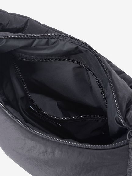 ワッシャー加工のナイロン生地にパッド素材を入れ、軽やかさと温かみのある立体的なシルエットです。クッション性がいいパッド入りのいいショルダーストラップは、結び目で長さ調整が可能です。メイン気室内には、小物の収納に便利なファスナー付きポケットを備えています。