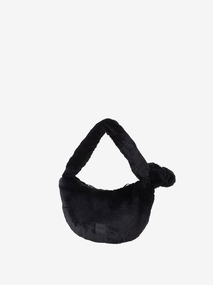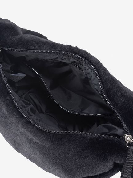 手にしたときに温かいファー素材の立体的なシルエットで、軽やかさと温かみがあります。ショルダーストラップは結び目で長さ調整が可能です。メイン気室内には、小物の収納に便利なファスナー付きポケットを備えています。