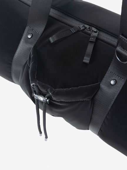 光沢感のある素材を使用し、ふんわりとしたフォルムに仕上げた円筒形ダッフルバッグのパディングバージョンです。韓国限定レーベルのアイテム。