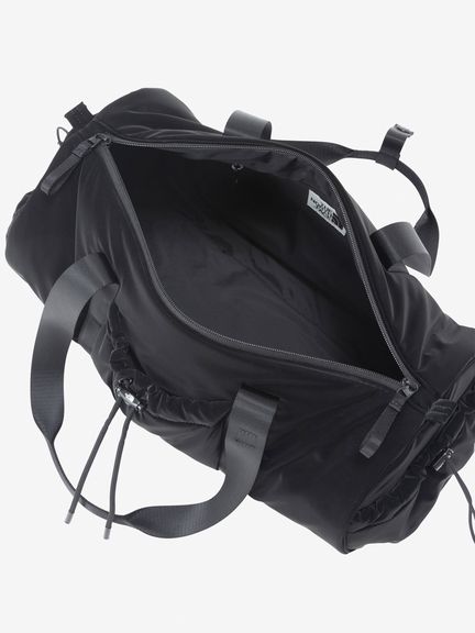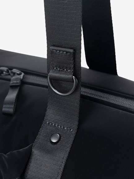ツヤのあるナイロン生地にパッド素材を入れ、軽やかさと温かみのある立体的なシルエットです。メタル素材のロゴを配置して、スポーティながらも洗練された上品さを演出。お手持ちのストラップをショルダーループに装着すると、ショルダーバッグとしても使えます。ドローコードで開閉できるシャーリングポケットをフロントと両サイドに備え、小物の収納に便利。メイン気室内にはファスナー付きポケットを備えています。