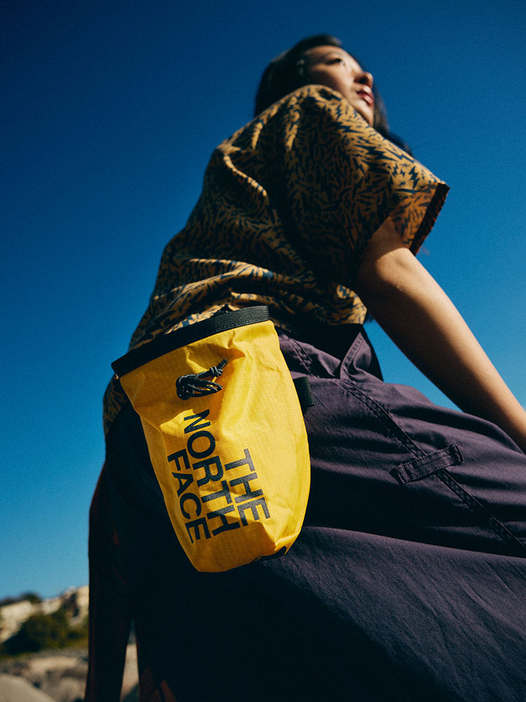 素材には、THE NORTH FACEで展開しているアイテムの残生地を利用して環境に配慮。長さを調整できるアジャスター付きのウエストコードは、動きやすさと軽量性を追求して3mm幅のコードを採用しています。サイドには、幅広のブラシホルダーを装備。