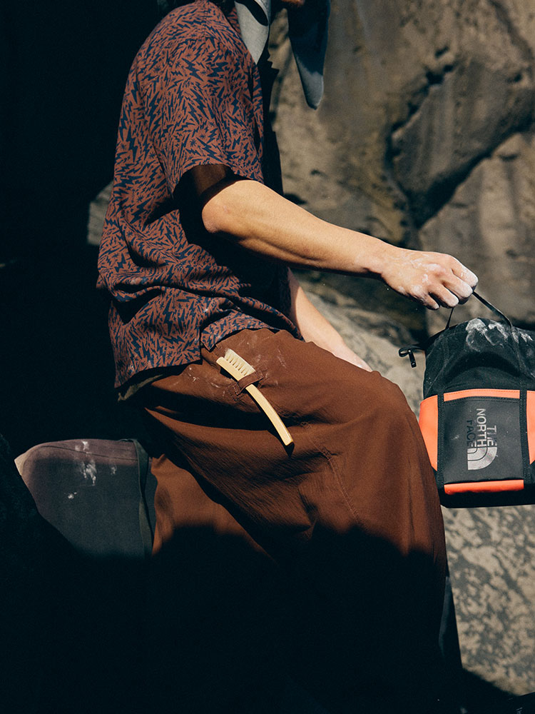 素材にはTHE NORTH FACEで定番アイテムのBC Duffelと同じ、環境に配慮したリサイクルポリエステルに、TPEファブリックラミネートを施した高強度の生地を採用。耐水性を備え、チョークを濡れや湿気から遠ざけます。