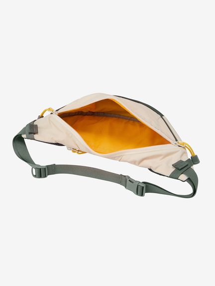 本体は体に沿う弓なり形状で、ヒップに荷重が乗る楽な装着感。ウエストベルトの両側に備えた調整アジャスターで、フィット感を高められます。メインコンパートメントには、キッズ携帯やお財布の収納に便利なセキュリティ性の高いファスナーポケットを配置。背面のファスナーポケットは、荷物の小分けに便利です。