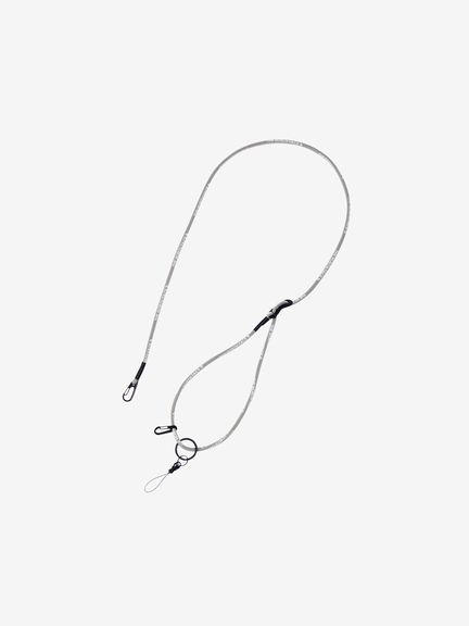 両側の先端に接続しているフックの使い方をアレンジすることで、多用途に使い分けができます。バックパックの取り外し式オーガナイザーやポーチなどと連結すると、サコッシュのようにも使用可能。付属のストラップパーツを使用することで、スマートフォンケースなどの取り付けにも対応します。本体の長さ調整部は、テントに使用されている自在金具を採用。