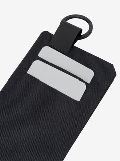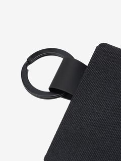 素材には、環境に配慮したリサイクルポリエステルを使用しています。面ファスナーで開閉できる内側に、カードホルダー、クリアポケットを設置。カバンに連結したり、ストラップを付けるなどのアレンジが可能なキーリング付きです。