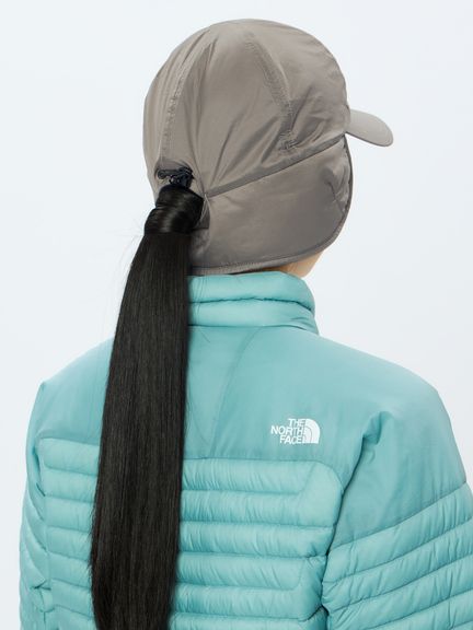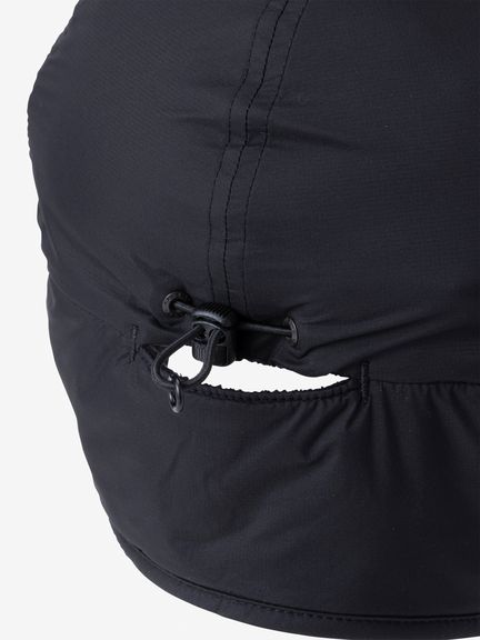 表地には、はっ水性を備えた「パーテックスカンタム」を採用。本体裏地にはマイクロフリースを配し、耳当て部に化繊の中わたを封入し、適度な保温性を確保しています。立体的なデザインの耳当ては、留め具を使うことなく立ち上げることが可能。