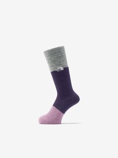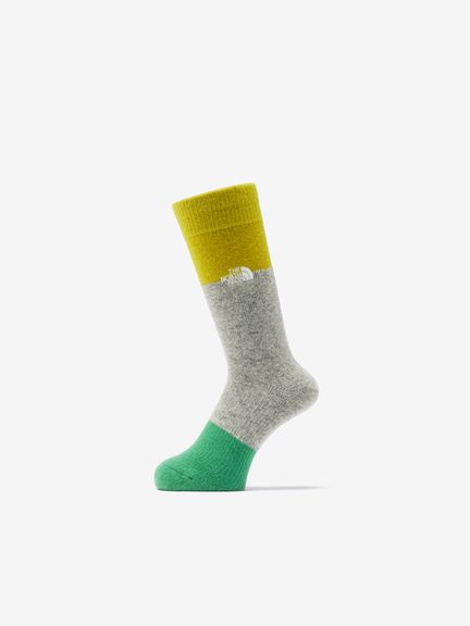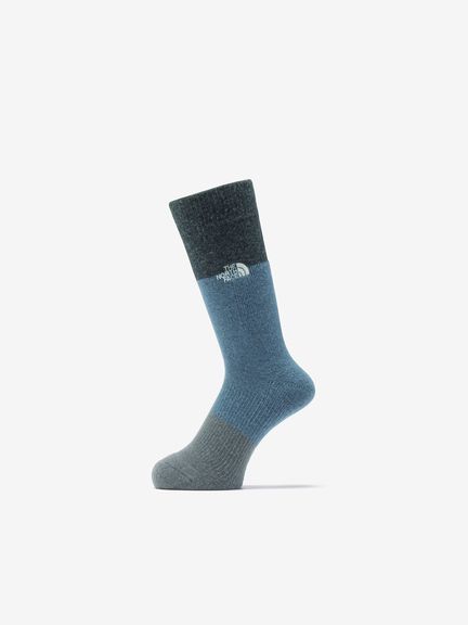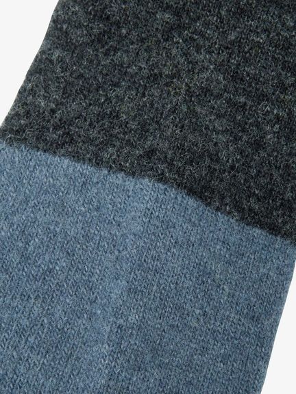 保温性と調湿性をもつウールの快適性と、摩耗強度の高いナイロンをハイブリッドした素材を採用。足裏からアキレス腱部までを保護するハーフパイル仕様で、クッション性と通気性を両立します。土踏まずのアーチサポート構造と長めのリブ設計で着圧をやわらげ、長距離歩行での負担を軽減。パイル部とリブ部でカラーを切り替えたブロックデザインで、コーディネートも楽しめます。