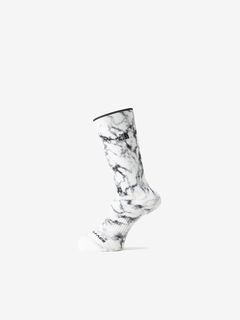 足指部分にはメッシュ編み構造を配置し、通気性を確保してムレを軽減。長時間のランニングでも快適さを保ちます。土踏まずにはアーチサポート構造を採用し、安定した走行をサポート。足首部分はリブ編み設計でホールド感を高めています。さらに、Polygiene StayFresh加工を施し銀イオンによる抗菌防臭機能を兼ね備え、汗をかくシーンでも清潔さを保ちやすい仕様です。デザインには立体的なグラフィックプリントを採用しています。