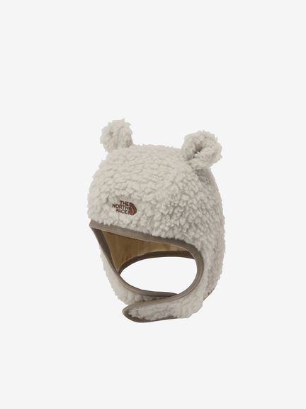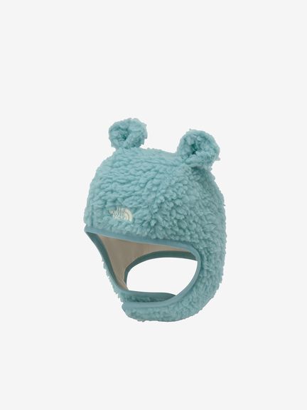 表面にはかさ高のある毛足の長いボアフリース、裏地には肌触りのよいコットン天竺の生地を使用したベビーキャップ。