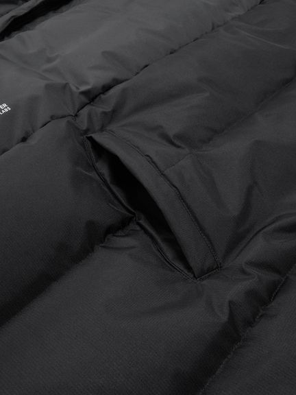 表地には防風性とやわらかな肌触りが特長のGORE-TEX WINDSTOPPERを採用。中わたはリサイクルダウンをたっぷり封入しています。コンパクトに収納でき、持ち歩きに便利なポケッタブル仕様。フード部分はドットボタンで取り外しができるうえ、クリップも収納可能な仕様です。