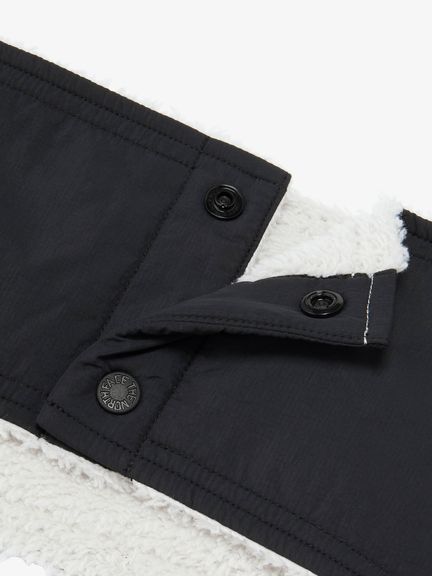 フリース面は毛足があり保温性に優れたシェルパフリース、布帛面は軽さと強度を兼ね備えた、防風性もあるリップストップナイロンを使用しています。
