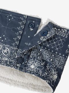 フリース面には、毛足が長く保温性に優れたシェルパフリースを使用。布帛面には、防風性を備え、軽さと強度を兼ね備えたリップストップナイロンを採用しています。ドットボタン仕様で、着脱もスムーズです。