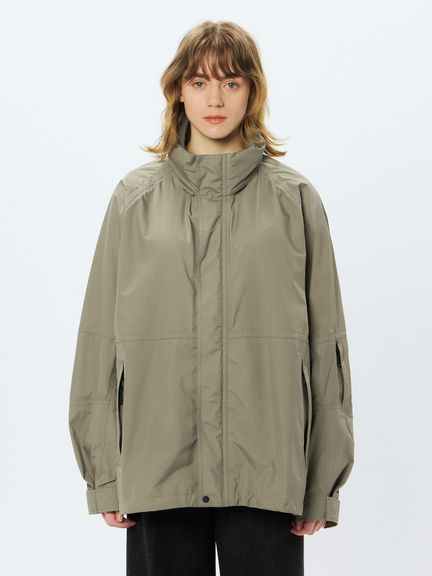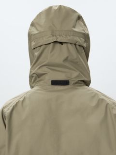GORE-TEX PRODUCTS 3層素材を採用。表地は20デニールのナイロンを使用することで、軽やかで柔らかな着心地。シームテープを張りながらもパッカリングを利かせた縫製を導入し、レインウエアでありながらヴィンテージ風のディテールに仕上げています。ヘリテイジ感のある形状のフードは、襟部分に収納可能。ダーツをつけてボリュームを持たせた肘や、太めの面ファスナーで調整できる袖口など、上半身の動きを妨げにくい仕様です。両サイドと左袖にジッパーポケットを配置。