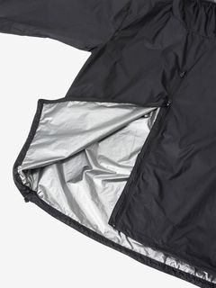 ・リップストップナイロンの一枚地の肌面に、保温効率を高めるチタンスパッタリングを加工