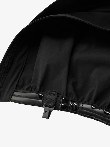 表地には重厚感としなやかさを両立する150デニールのGORE-TEX PRODUCTS 2層素材を採用。靴を履いていても着脱がしやすいフルオープンのサイドファスナーや、コーデュラを使用した裾のアイゼンガードなどを配置。